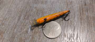 Состояние на фото - в этом случае затрудняюсь дать объективную оценку воблеру, как правило следы использования ярко выражены, может быть не всё хорошо с лкп,но видимых дефектов по функционалу не обнаружено