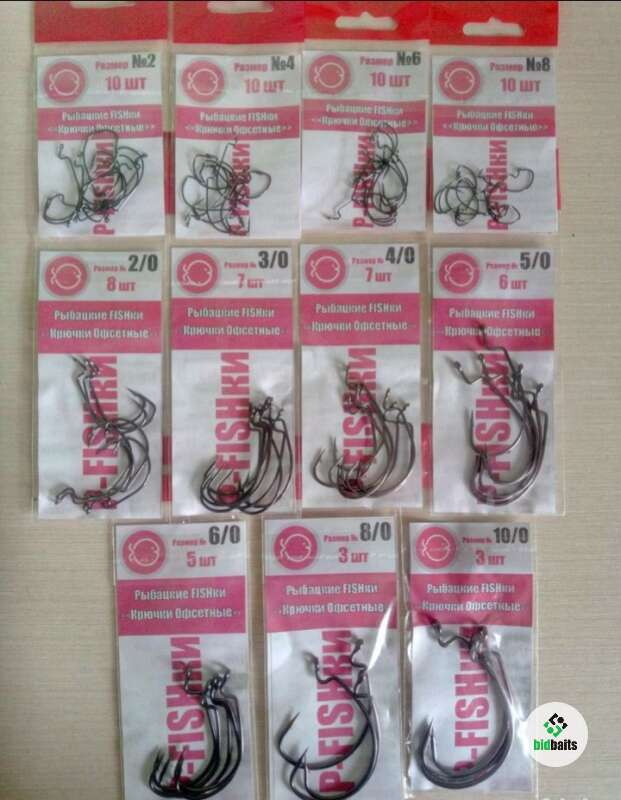 Офсетный крючок 8/0, в пачке 3 шт
