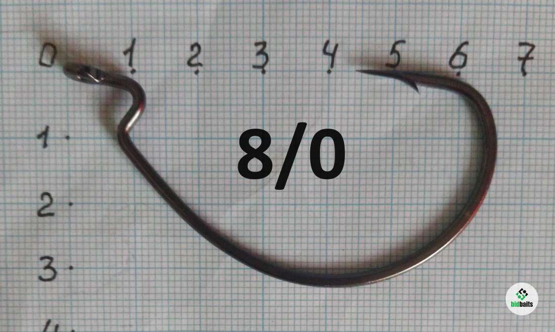 Офсетный крючок 8/0 - острый, прочный. В пачке 3 шт.