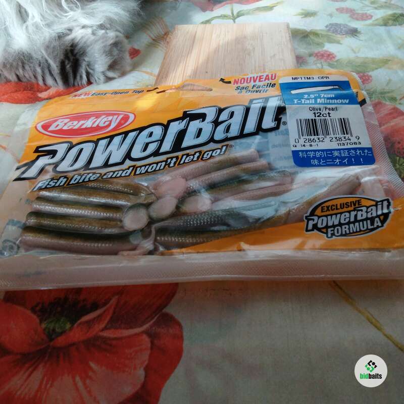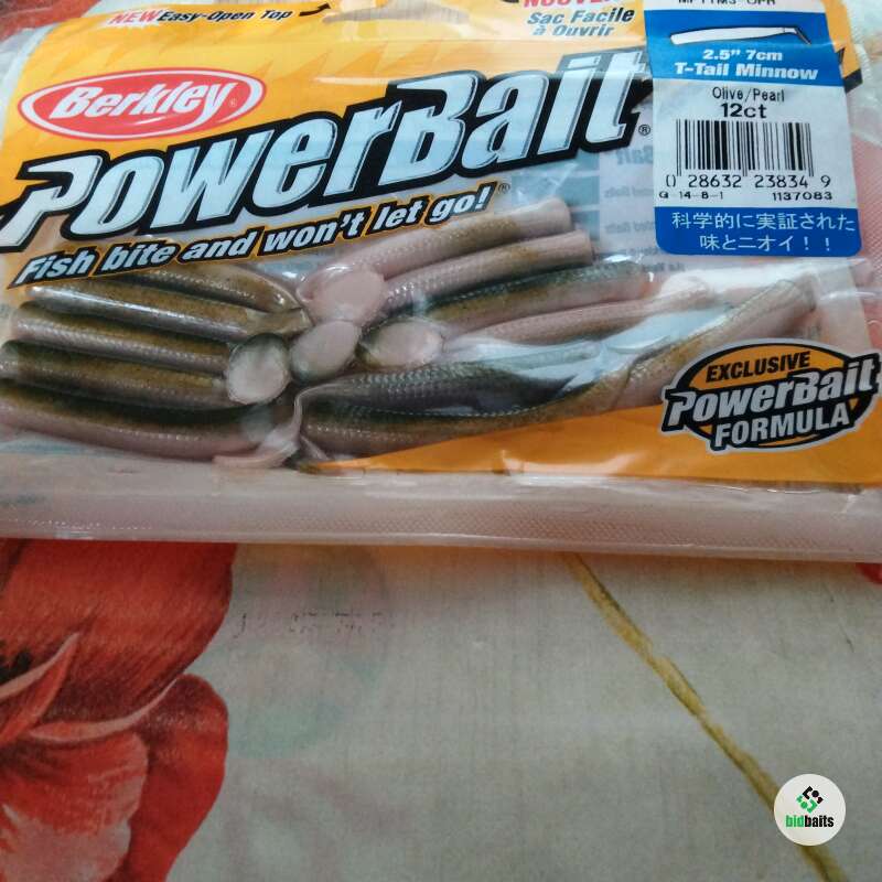 Силиконовые Berkley POWERBAIT MPTM3-OPR (2.5".7cm. T-Tail Minnow Olivo/Pearl 12 ct.