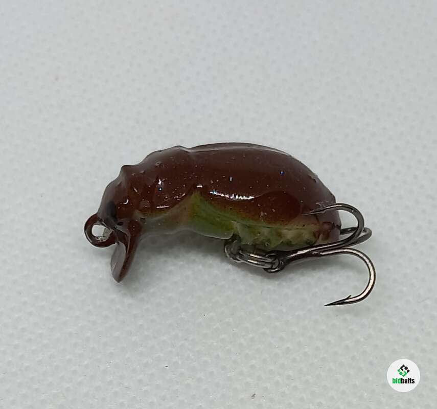 Воблер Trout Zone ручной работы BuG Realistic 26 F вес 1,4g Заглубление 0-0,05м, поверхностный жучок с мелкими колебаниями, оставляет след усов на поверхности .