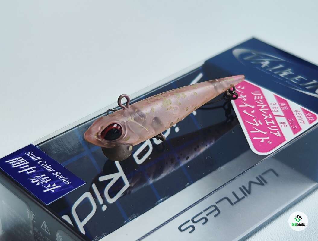 С вибами можно облавливать разные слои водоема, но приманки Shine Ride специализируются на ловле форели в придонном слое. В головной части расположена огрузка из вольфрама. Поэтому приманка наклонена вперед, как кормящаяся со дна рыбка. Для анимации можно применить легкие покачивания спиннингом, либо просто волочение по дну. Такое поведение способно спровоцировать пассивную рыбу. Приманка весит всего 3,6 гр. Рифление корпуса, имитирующее чешую, копии глаз и жаберных крышек придают больше схожести с прототипом. В серии есть как очень яркие окрасы, там и более сдержанные, для пассивной рыбы и прозрачной воды.