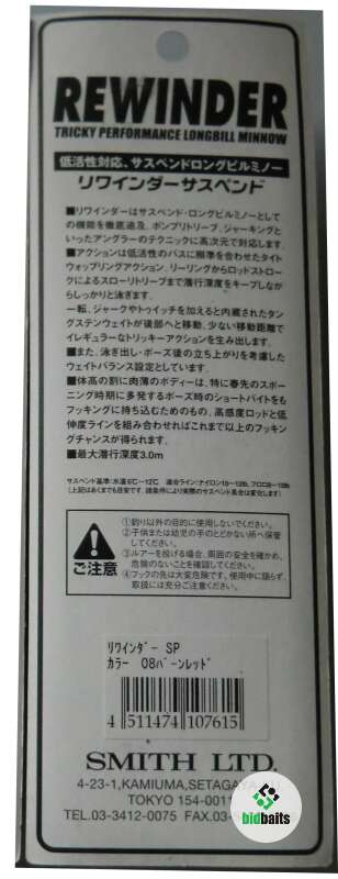 Продаются новые, оригинальные воблеры Smith Rewinder 93SP произведённые в Японии. Цена указана за один воблер. Это не китайская подделка, которая только внешне схожая с оригиналом, но никогда не повторит игру и анимацию оригинального воблера Smith Rewinder. Серия Rewinder была создана специалистами Smith для исследования дна и придонного слоя на глубине до 3-х метров. Это минноу с внушительной носовой лопаткой, которая позволяет отскакивать от твердой поверхности и минимизировать зацепы. Пластиковый прогонистый корпус в 9,3 см имеет несколько "фишек". По специальному каналу вдоль брюшка перемещается большой металлический груз. Это превращает Rewinder в инструмент для облова приличных акваторий, так как позволяет прицельно и далеко забрасывать минноу. Два крупных шарика зафиксированы рядом с головой и один маленький - в месте сужения хвоста. Благодаря первым двум, воблер кренится носом вниз. И кажется, будто маленькая рыбка ищет пропитание в иле, поднимая мутное облачко. Такое поведение хорошо для привлечения внимания хищников. Маленький шарик нужен для дополнительного акустического эффекта. О появлении Rewinder узнают обитатели даже отдаленных уголков водоема.