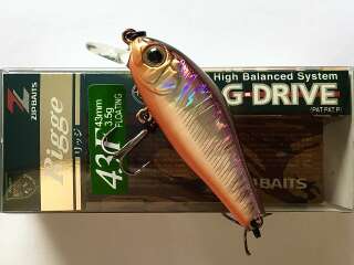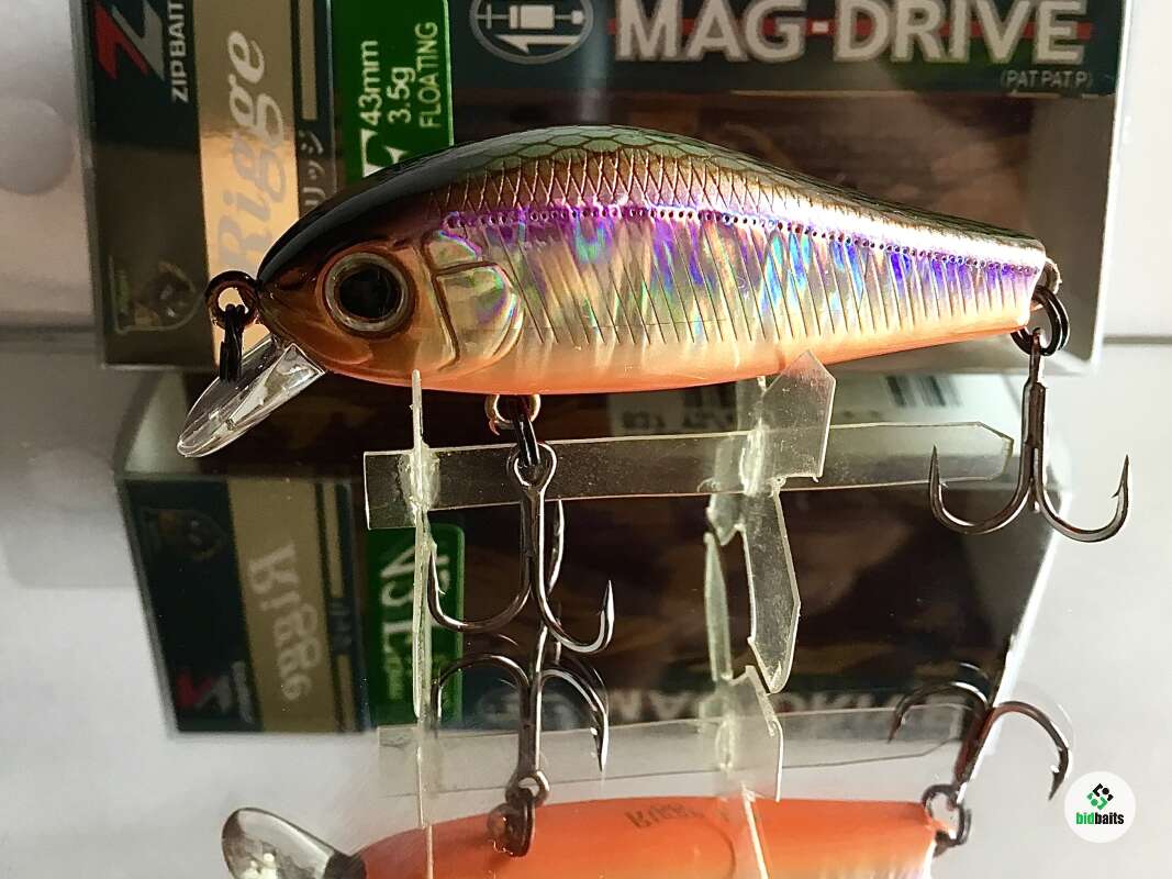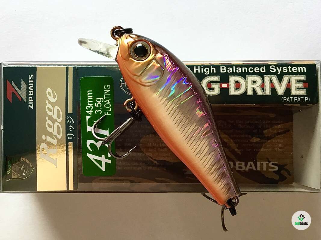Zipbaits Rigge 43 - выпускается в трех версиях: Rigge 43F плавающий 3,4г заглубление 0,1-0,5м; Rigge 43SS медленно тонущий 4,3г заглубление 0,3-0,8м; Rigge 43SP суспендер 4,0гзаглубление 0,3-0,6м