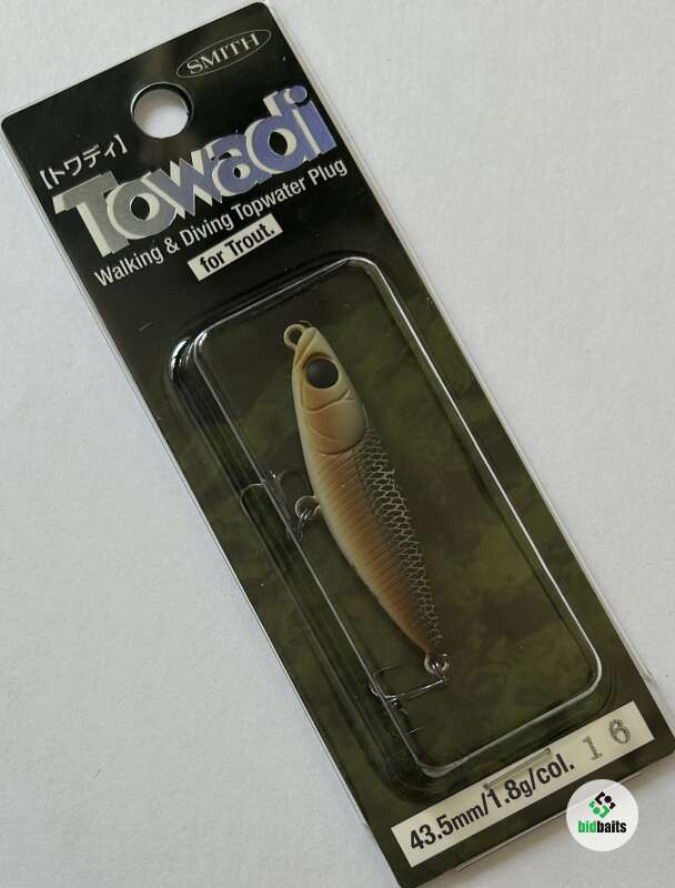 Воблер Smith Towadi– это небольшая поверхностная приманка для ловли голавля, жереха, окуня, язя, а разрабатывалась она изначально для форели. Оной из особенностей данной модели является небольшая бороздка в передней части. Это углубление действует по принципу, по которому работает поппер, т.е. издает при резком рывке соответствующий звук.