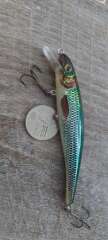 Состояние на фото - в этом случае затрудняюсь дать объективную оценку воблеру, как правило следы использования ярко выражены, может быть не всё хорошо с лкп,но видимых дефектов по функционалу не обнаружено