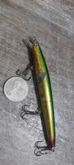 Состояние на фото - в этом случае затрудняюсь дать объективную оценку воблеру, как правило следы использования ярко выражены, может быть не всё хорошо с лкп,но видимых дефектов по функционалу не обнаружено