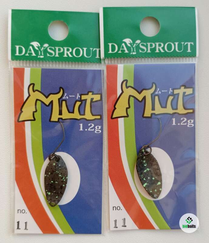 Mut - колеблющаяся блесна для ловли прудовой форели от японского бренда DaySprout. Блесна создана под руководством Макото Учиды. Микросилуэт блесны будет привлекать рыбу всегда, вне зависимости от ситуации на водоеме. У Mut'а нет четкого предназначения. Это микро блесна, игра которой легко контролируется положением удилища. Особая палитра цветов, специально разработанная компанией DaySprout, делает Mut серьезным орудием как в руках опытного форелятника, так и начинающего рыболова.