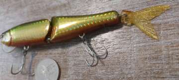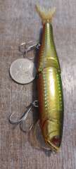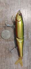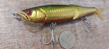 Составник , привезён из Японии, длинна без хвоста 130, с хвостом 165, вес 34 g, тонущий, на одной щеке есть иероглиф, на другой дата 2007. Чьих конкретно рук дело, - не знаю. Состояние отличное, качество тоже, см.фото.