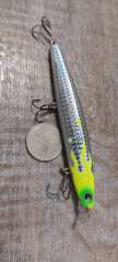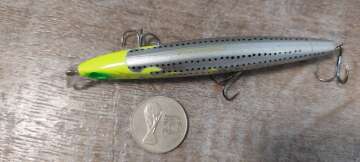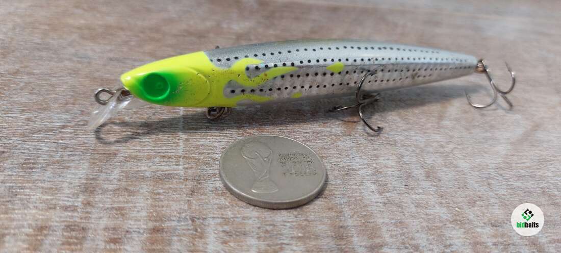 Состояние на фото - в этом случае затрудняюсь дать объективную оценку воблеру, как правило следы использования ярко выражены, может быть не всё хорошо с лкп,но видимых дефектов по функционалу не обнаружено
