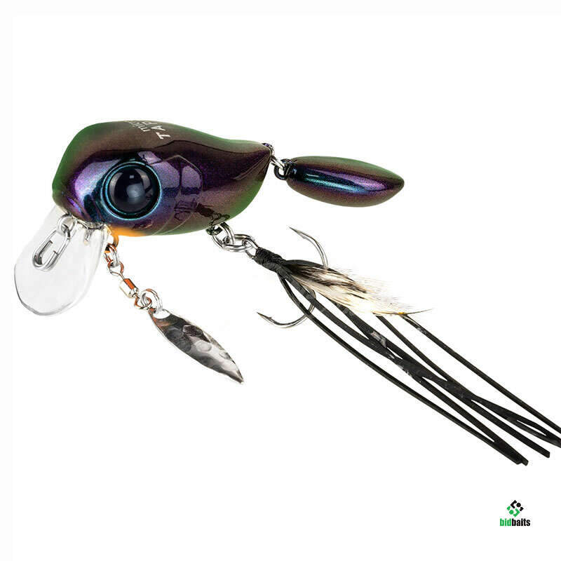 Воблер Jackall Micro Tappy – небольшой кренк, оснащённый несколькими элементами для привлечения рыбы и соблазнения её на поклёвку. Приманка имеет объёмное пузатое тело с широкой лопаткой, которая создаёт активную виляющую игру во время проводки. Единственный тройник, установленный на животе, оснащён бородкой из комбинации перьев и силиконовых полосок. Это помогает стабилизировать приманку, спрятать тройник и создать дополнительную струящуюся игру, привлекающую хищника. Также в нижней части воблера имеется металлический лепесток, закреплённый на вертлюге, который вращается во время проводки, при этом бликуя. В задней части Micro Tappy закреплён пластиковый хвост повышенной плавучести, что сделано для того, чтобы создавать дополнительные волнения на поверхности и пускать усы во время движения.Воблер Jackall Micro Tappy очень прост в управлении, так как для его игры достаточно равномерно вращать ручку катушки. При этом он всё сделает сам. Данная приманка подойдёт для ловли хищной рыбы, которая кормится с поверхности, предпочитая некрупные приманки, например, окунь, голавль, жерех, иногда щука.