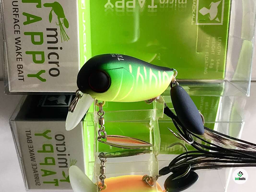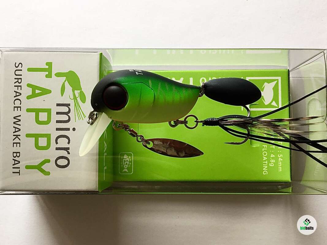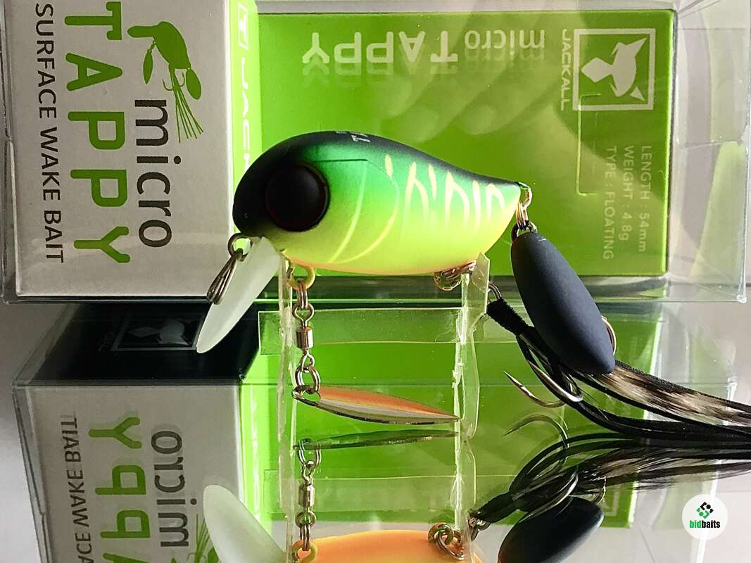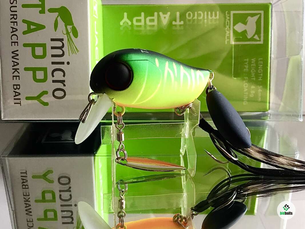 Micro Tappy 54F -'то небольшой воблер класса "crank", который особенно ценится у любителей ловли белого хищника. Подповерхностное заглубление воблера позволяет облавливать заросшие и труднодоступные места водоема. Приманка оснащена множеством подвижных элементов для привлечения рыбы и соблазнения её на поклёвку. Jackall Micro Tappy имеет объёмное пузатое тело с широкой лопаткой, которая создаёт активную виляющую игру во время проводки. Единственный тройник, установленный на животе, оснащён бородкой из комбинации перьев и силиконовых полосок. Это помогает стабилизировать приманку, спрятать тройник и создать дополнительную струящуюся игру, привлекающую хищника. В нижней части воблера также имеется металлический лепесток, закреплённый на вертлюжке, который вращается во время проводки, при этом бликуя. В задней части Micro Tappy закреплён пластиковый хвост повышенной плавучести, что сделано для того, чтобы создавать дополнительные волнения на поверхности и пускать усы во время движения. Данная особенность добавляет воблеру привлекательности в воде и обеспечивает гарантированный улов даже в период низкой активности рыбы. Jackall Micro Tappy разработан для ловли басса у поверхности воды, у нас же он отлично работает по окуню и голавлю.