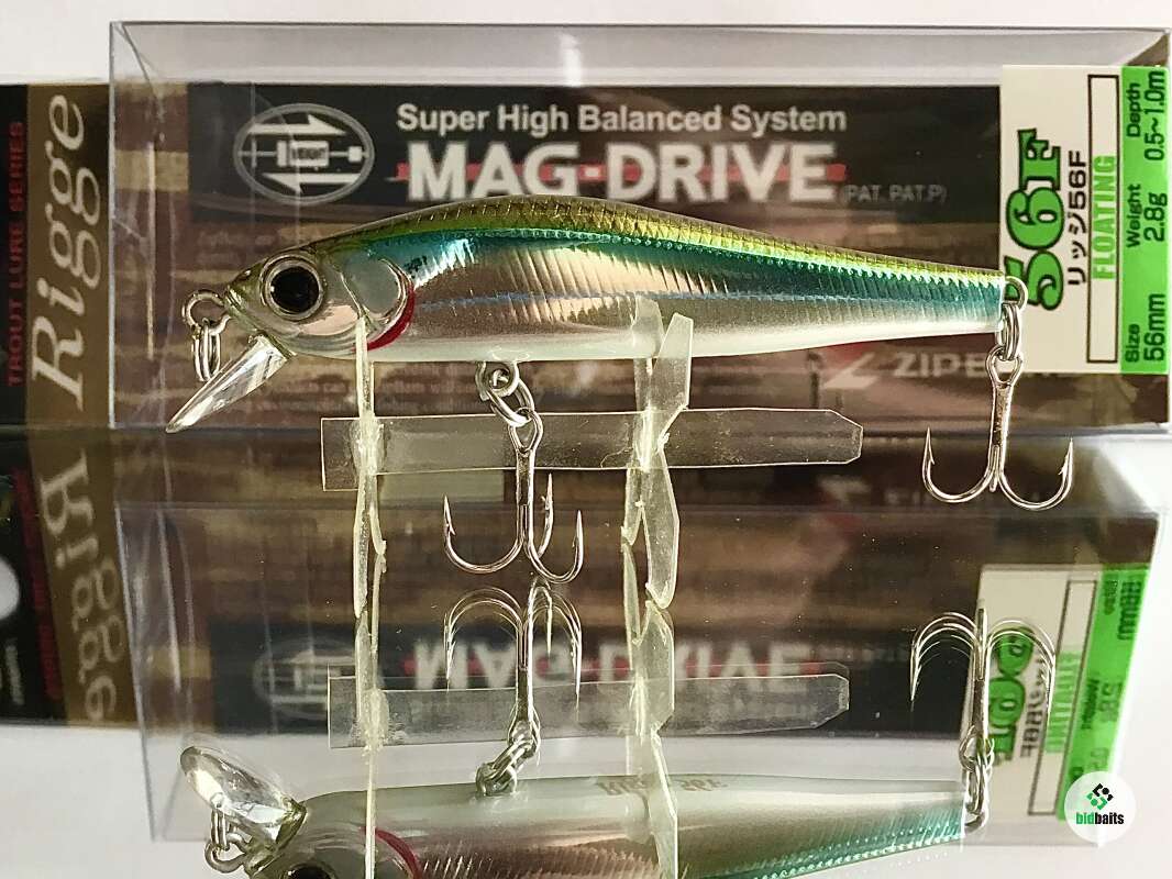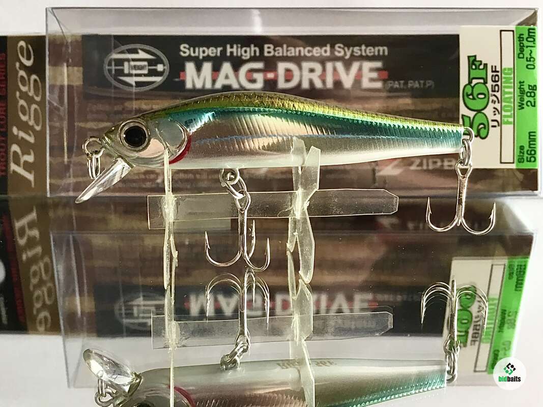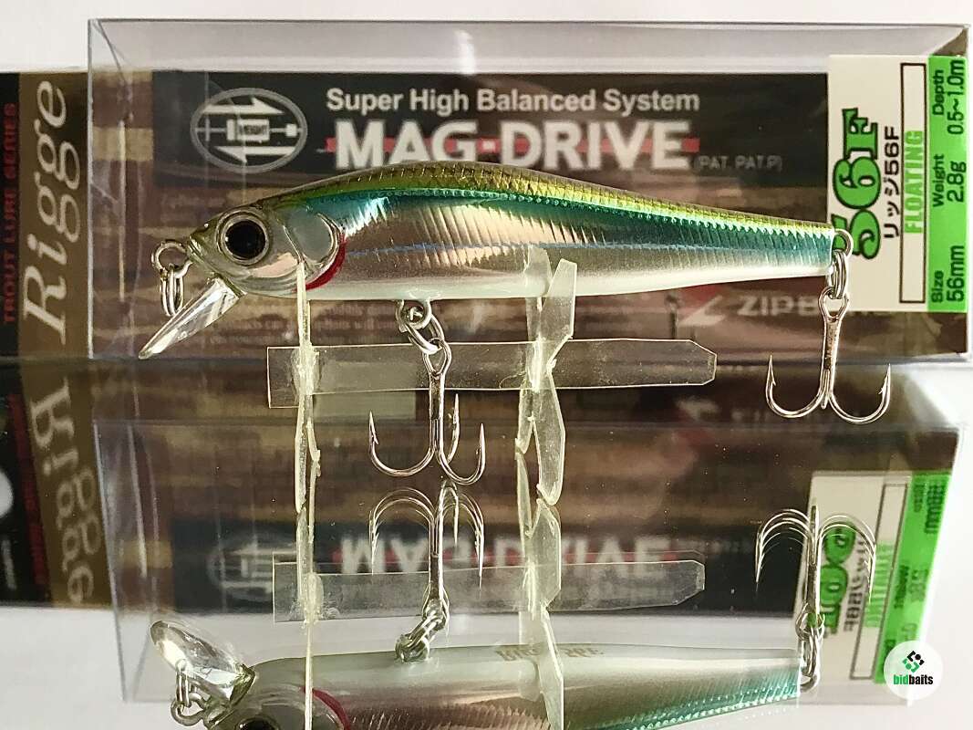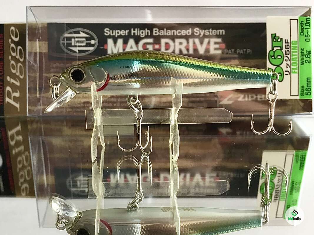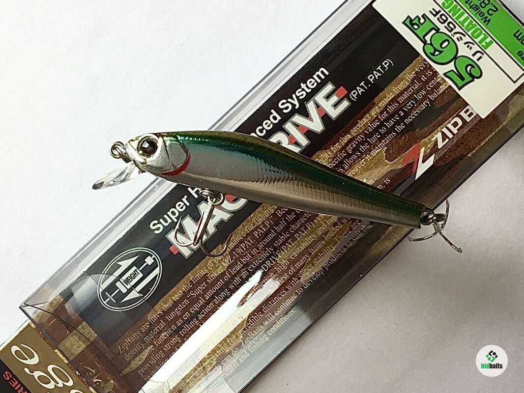 56F - плавающая версия Rigge от компании ZipBaits. В линейке "Rigge" 56-й размер – самый популярный, он отлично зарекомендовал себя при ловле практически всех наших хищников, включая ручьевую и содержащуюся в платных прудах радужную форель, окуня, некрупную щуку, жереха, голавля, язя. Это воблер-универсал, для него нет существенной разницы где "работать" – в водоеме со стоячей водой или на течении. Привлечению хищника способствует также особая светоотражающая система воблера. Специфическая, в сечении в виде перевернутого треугольника (Side Flash Design) форма тела обеспечивает отражение света с трех плоскостей. Фирменная, чуть с горбинкой, удлиненная форма тела, но уже имеющая традиционные для класса «minnow» пропорции, обеспечивает низкоамплитудную с небольшой частотой игру. Именно такие технические характеристики предопределяют наиболее эффективным методом анимации этого воблера активный твичинг, нежели равномерную проводку. Воблер оснащен системой Mag-Drive, с вольфрамовым грузом MZ-19, расположенным внутри тела приманки. Именно за счет этого достигнута идеальная балансировка, способствующая не только «правильной ориентации» приманке в воде, но и дальнему точному забросу.