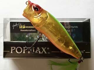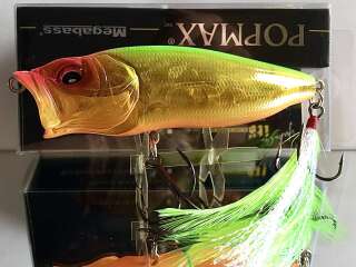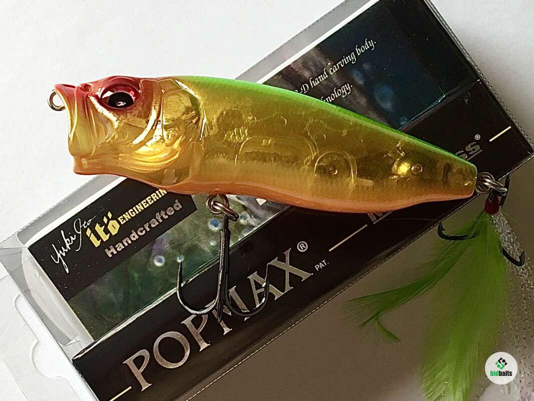 Megabass PopMax был разработан без применения компьютерных программ лично основателем компании господином Юки Ито. POPMAX оснащён системой POPMAX Weight Setting System (PAT.) и при проводке способен вилять, как «уокер»( делает самую четкую волкерную елочку из всех попперов). Два неподвижных груза в хвостовой части предопределяют его отменные баллистические характеристики, а система водоканалов в головной части (Water Intake& Water Chamber (PAT.P)), состоящая из шести отверстий и внутренней водяной камеры, генерирует ни с чем не сравнимые колебания. Помимо создания биозвука эта система использует изменения давления воды внутри водяной камеры, делая её работу аналогичной работе лопасти. Более того, при паузе вода из камеры вытекает, и голова воблера приподнимается, готовая к новому шлепку, который провоцируется лёгким движением удилища. Достаточно слегка качнуть его вершинкой, и POPMAX будет переваливаться, динамично зачерпывая воду при каждом покачивании. Иногда бывает достаточно лишь слегка пошевелить POPMAX, чтобы вызвать моментальную хватку хищника.