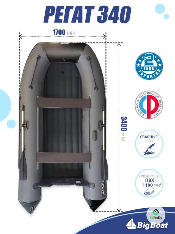 Лодка моторная Big-Boat Regat 340 (НДНД) Серо-красная