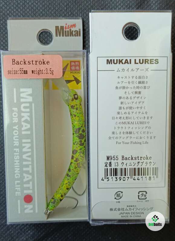 Mukai Backstroke 55S - воблер для ловли пассивной форели. Благодаря перевернутому расположению лопатки и форме тела приманка раскачивается при проводке, привлекая форель. Подходит для ловли пассивной форели со дна, волочением по дну и рывковыми проводками. Так же отлично работает при ловле в толще водоема. Воблер оснащен двумя одинарным безбородым крючками.