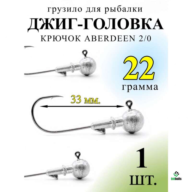 Джиг-головка на крючке ABERDEEN №2/0 - 22 гр. (10 шт)