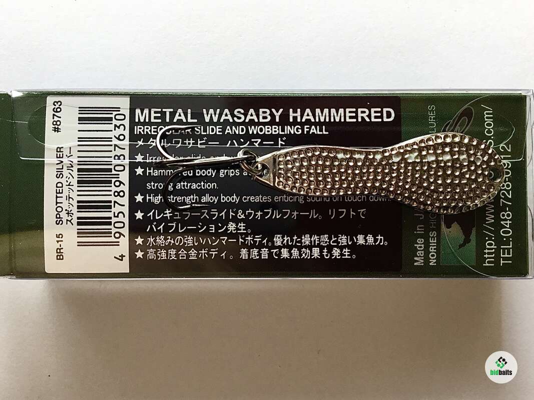 Nories Metal Wasaby Hammered- дальнобойные приманки, обладающие выдающимися полетными характеристиками. Прекрасно работают, как на равномерной проводке, так и на падении. Созданные для басса, у нас они завоевали признание среди рыболовов, особенно при ловле жереха.