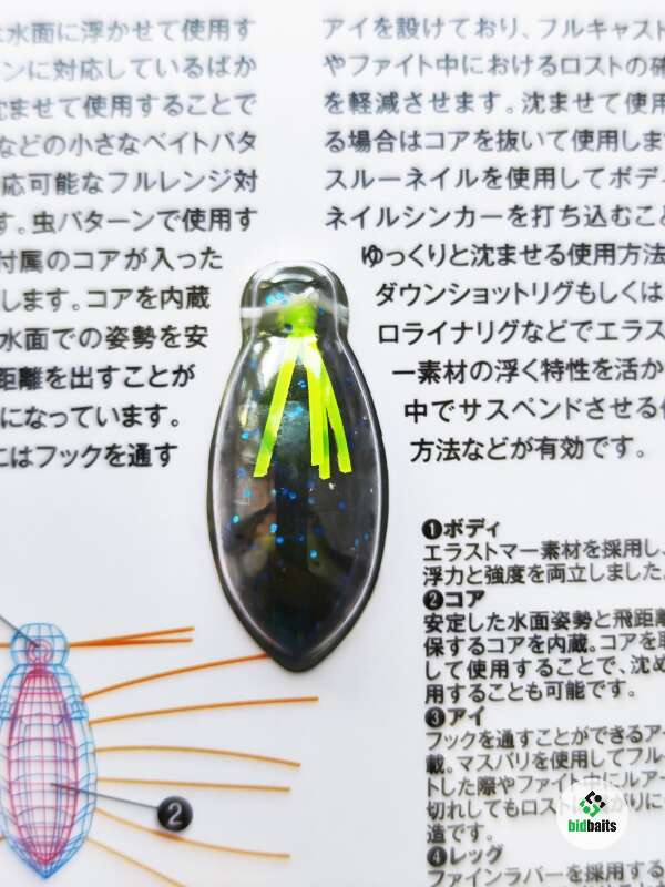 Приманка изготовлена из специального эластомера, который не только позволяет добиться реалистичного облика, но и обеспечивает необходимую «живучесть». При этом он достаточно «агрессивен» к другим материалам, поэтому хранить «жуков» от Jackall следует в фирменной упаковке, отдельно от других приманок.