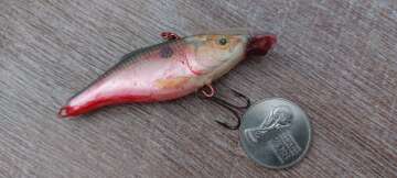 RAPALA RATTLIN 07 16.5 g шумный . Замастырена какая-то штука типа лопаты с утижелителем, сам не кидал, подкрашен красным маркером, см.фото.