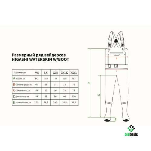Водонепроницаемые вейдерсы Waterskin от компании Higashi. Модель Waterskin представляет собой забродный комбинезон, выполненный на основе материала PVC, оснащенный литым сапогом с резиновой подошвой. Удобный анатомический крой отлично дополняет высококачественная фурнитура от YKK®. Еще одной немаловажной отличительной особенностью нашей экипировки является отсутствие швов на внутренней стороне бедра, присутствие которых, ранее, приводило к быстрому износу в этих местах у других производителей.
