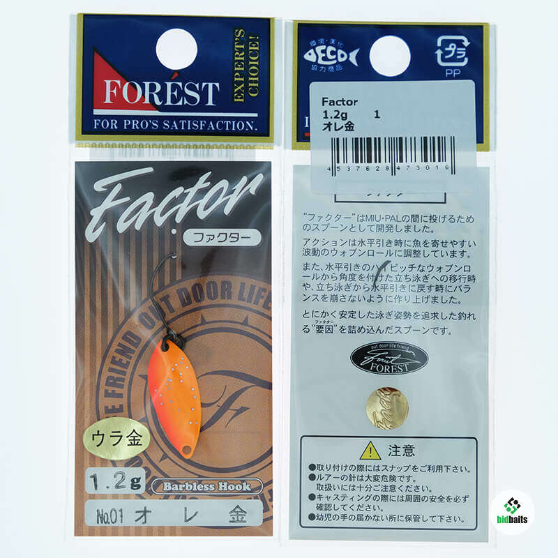 Колеблющаяся блесна Forest Factor - была создана компанией Forest как разведчик, для ловли активной форели. Она очень проста в освоении, подойдет даже для новичков. Имеет хорошие полетные характеристики и стабильную игру. Все блесны данной модели оснащены одинарным безбородым крючком.