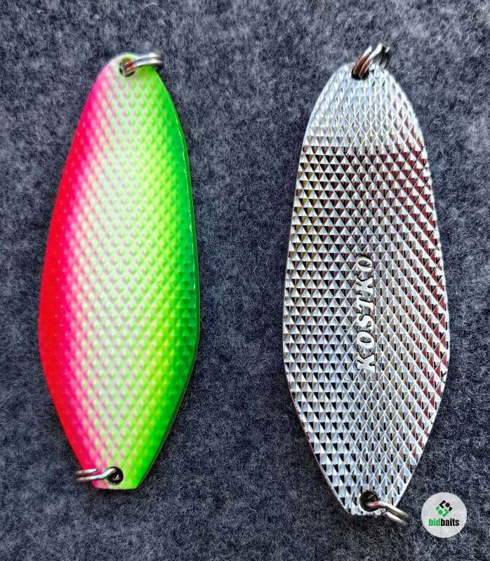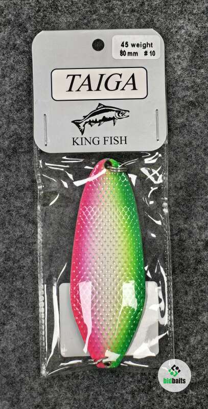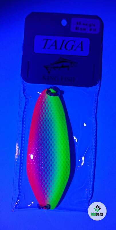 Серия блесен TAIGA от - разработчика KOSTKO, представлена в весе 45гр. Серия состоит из 10 блесен разной цветовой палитры, с применением UV- красок. (ультрафиолетовое свечение краски). Оригинальный и не повторимый дизайн, все это реализовано для Трофейной рыбалки на Лососевых рыб.