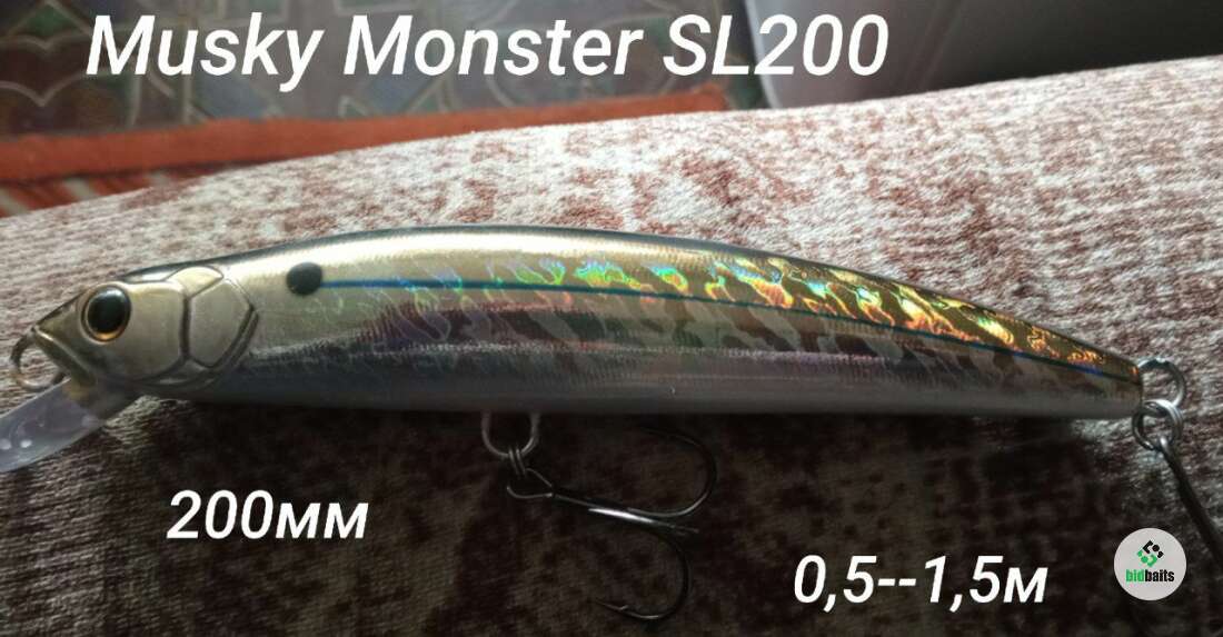 Продам новый воблер Минноу Strike Pro Musky Monster SL200, 200 мм, 110 гр, Загл. 0,5м.-1,5м., Плавающий, 995= Цена указана со скидкой (до 31.07.2025г.)