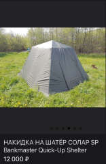 Накидка для шатра Solar SP ,Carp Pro, Prologic от OLBUS , около молнии на входной двери с верху чуть подряпан материал(зажевало собачкой) не критично всё работает отлично,внешне толком ни чего не видно.