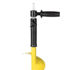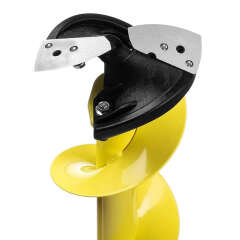 Верхняя часть шнека сделана с нескользящим "теплым" держателем. Съемная голова выполнена из прочного композитного материала, поэтому выдерживает большие нагрузки и гарантирует постоянный режущий угол ножам. Радиусные ножи из высококачественной стали подходят для работы со всеми типами льда, обеспечивая легкое сверление.
