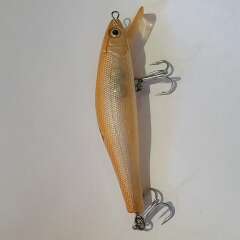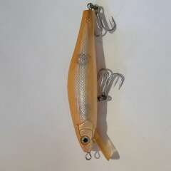 Тонущий воблер с системой дальнего заброса 90мм, 13,9гр. Состояние отличное, есть незначительный скол лакокрасочного покрытия.