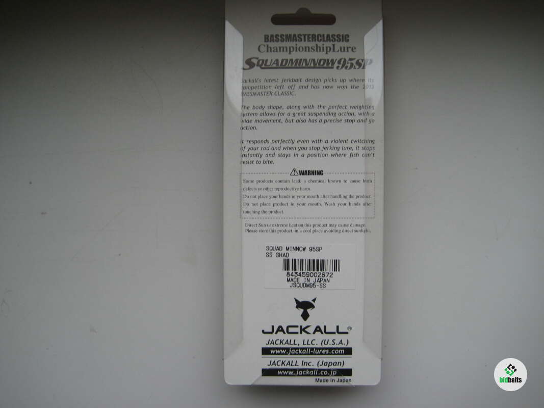 JACKALL SQUAD MINNOW 95SP (SS Shad) Made in Japan 1/2oz