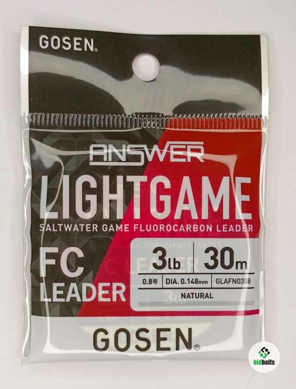 Gosen Answer Light Game FC Leader [Natural] 30m - тонкий и мягкий флюорокарбон, благодаря чему, не меняет естественную игру даже самых лёгких приманок. Практически невидим в воде, не обмерзает, не имеет памяти, не впитывает воду. Обладает хорошей стойкостью к воздействию абразива. Применятся как в пресной, так и в соленой воде.