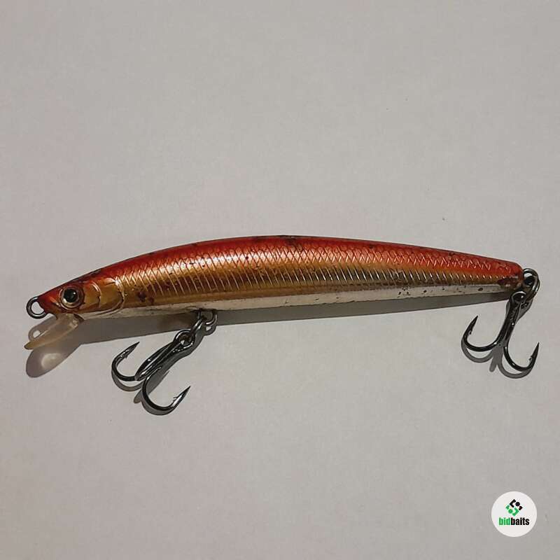 Плавающий воблер с системой дальнего заброса 95мм, 7гр. Состояние хорошее, есть многочисленные сколы лакокрасочного покрытия.