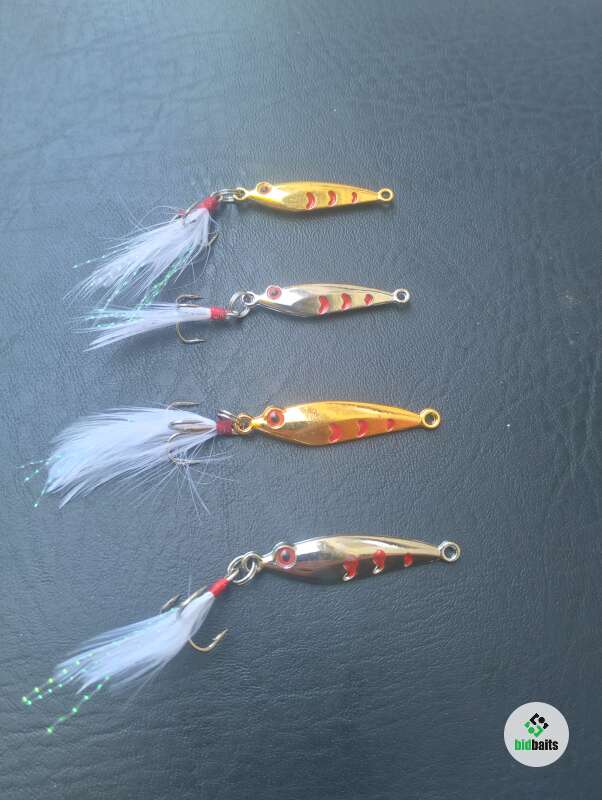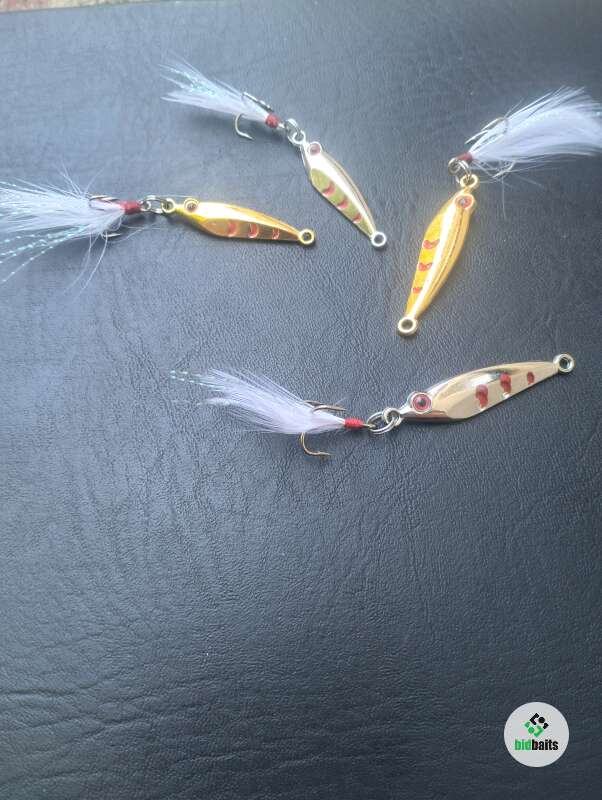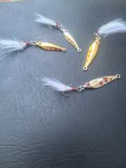 Пилькер для ловли на ультралайт. Цинковый сплав с гальваническим покрытием, оснащен тройником с пером.