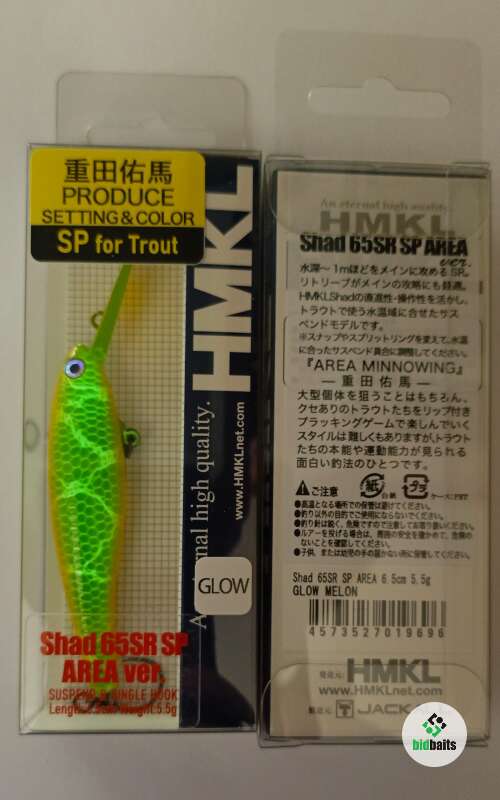 HMKL Shad SR Area Ver. 65 F - версия популярного воблера японской компании HMKL. Разработан для ловли активной и среднеактивной прудовой форели. Воблер снабжен системой дальнего заброса. Особенностью является использование вертлюгов в месте крепления крючков, что делает минимальным шанс на сход рыбы. Развесовка приманки расчитана так, что амплитуда ее игры остается стабильной на любой скорости проводки. За счет того, что воблер плавающий, можно проводить его ступенькой, давая возможность всплывать на паузах.