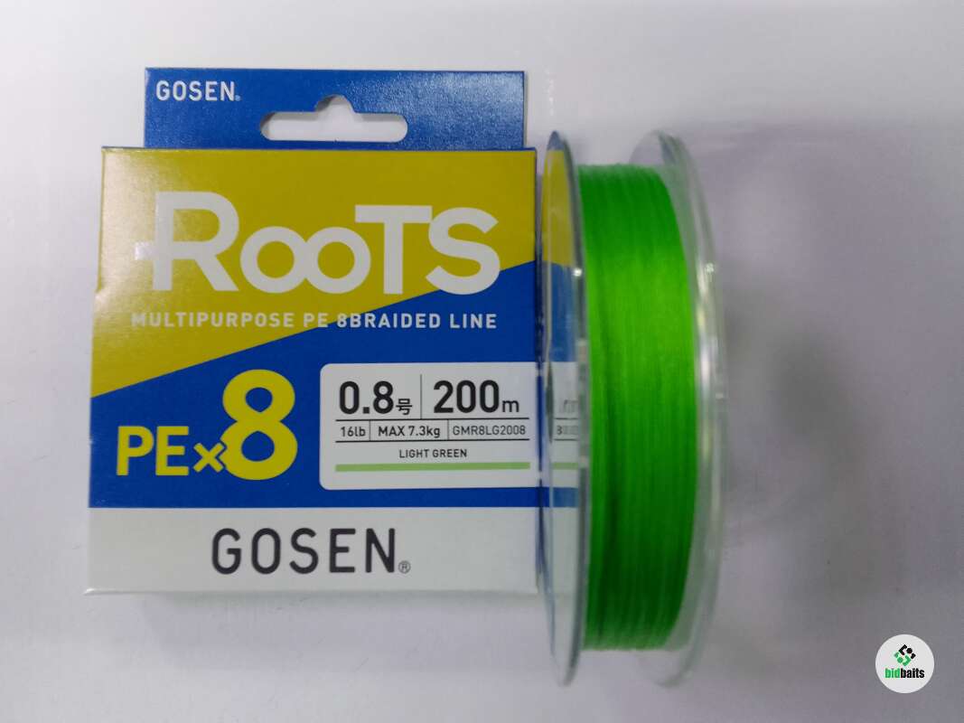 Шнур PE Gosen Roots PE X8 L.GRN 200m #0,8 16lb 7.3kg