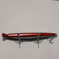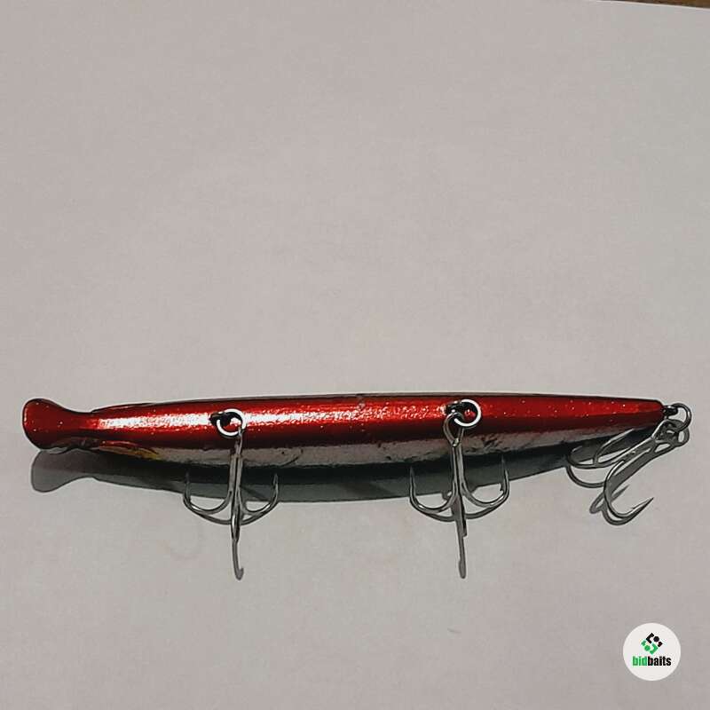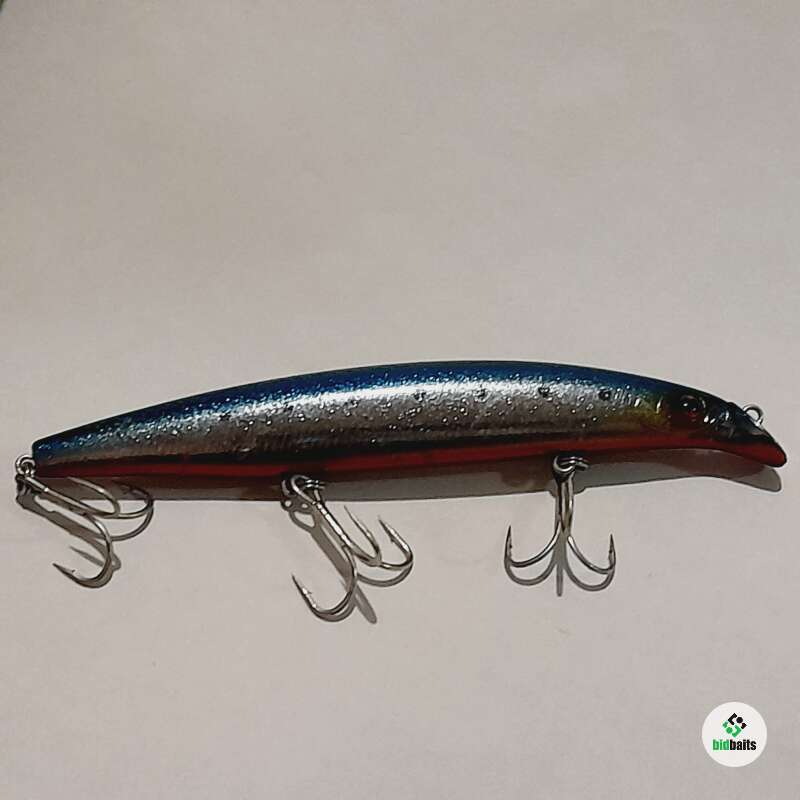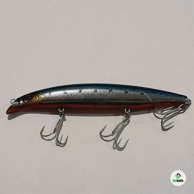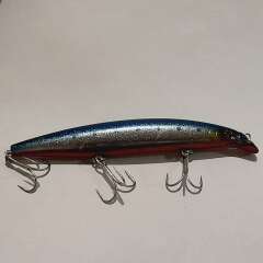 Тонущий воблер с системой дальнего заброса 130мм, 20,7гр. Состояние хорошее, есть незначительные сколы и потертости лакокрасочного покрытия.