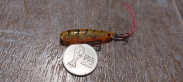 Состояние на фото - в этом случае затрудняюсь дать объективную оценку воблеру, как правило следы использования ярко выражены, может быть не всё хорошо с лкп,но видимых дефектов по функционалу не обнаружено