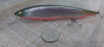 Состояние на фото - в этом случае затрудняюсь дать объективную оценку воблеру, как правило следы использования ярко выражены, может быть не всё хорошо с лкп,но видимых дефектов по функционалу не обнаружено