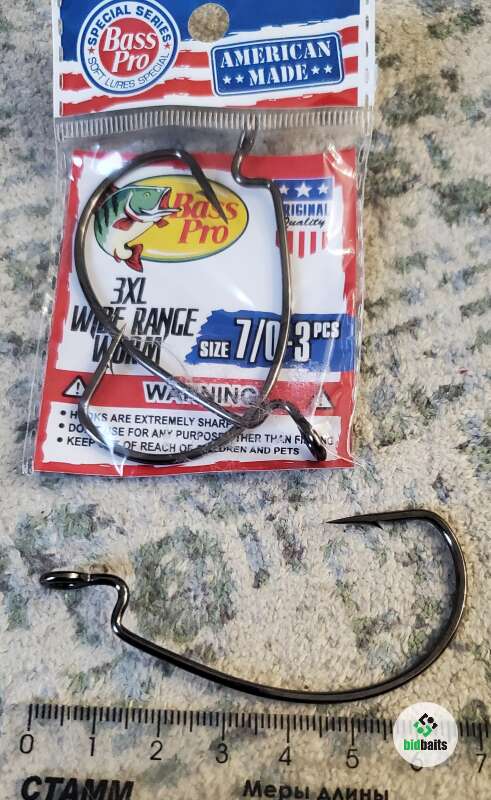 Офсетные крючки Bass Pro #7/0, кол.3 шт