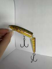 Rapala Jointed - это состоящая из двух элементов версия модели Original. Он является необычайной приманкой, которая прекрасно годится, как для спиннинга, так и для троллинга. Разница между воблерами Jointed и Original заключается в большей подвижности первого. Рекомендуется для ловли в воде с низкой температурой и когда рыба не клюет. Активно движущийся конец корпуса воблера провоцирует хищников к атаке. Jointed 5-7 см это популярная приманка для пугливой форели. Большие модели 11-13 см великолепно годятся для ловли щуки. Даже когда рыба совершенно безразлична ко всему, Вы можете усилить действие приманки, используя один из эффектных, раздражающих рыбу цветов. Jointed прекрасно ведет себя при переменной скорости подмотки, а также при очень медленном управлении или троллинге, без утери динамики его подвижности.