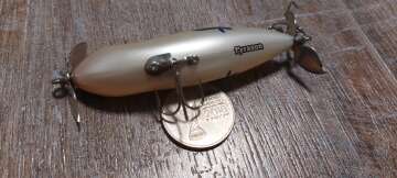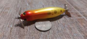 Состояние на фото - в этом случае затрудняюсь дать объективную оценку воблеру, как правило следы использования ярко выражены, может быть не всё хорошо с лкп,но видимых дефектов по функционалу не обнаружено