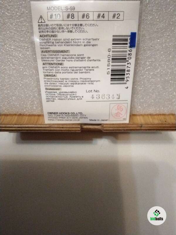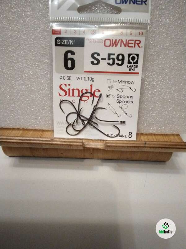 Крючки рыболовные: OWNER.SIZE/N6(0.68.WT.0,10g).S-59.Single Hook.QTY./QUANT.8.Made in Japan.