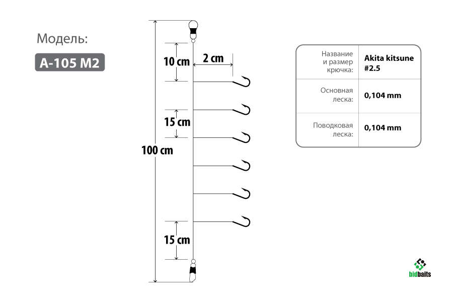 • Длина между поводками - 15 см;