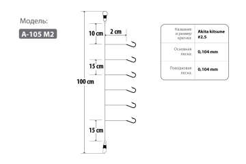 Оснастка Higashi A-105 M2 (новинка сезона 2020) выполнена с применением крючка Akitakitsune #2,5 (Made in Japan). Она связана на крючках с ушками, что позволяет подавать рыбе наживку максимально естественно. Данная оснастка предназначена для ловли корюшки на животные насадки (опарыш, ракушка) или с применением искусственных имитаций (мобискин, силикон и тд.). С нашими оснастками Вы всегда будете с Уловом!