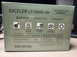 Новая катушка daiwa exceler 1000, ни одной рыбалки не было, даже не всё наклейки ещё снял. Продаю потому что оказалась маловата.