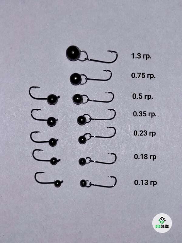 Использую вольфрамовые головки (black nickel) с раменской струной ⌀0,25 на крючках kumho №18, 16, 14, 12, 10