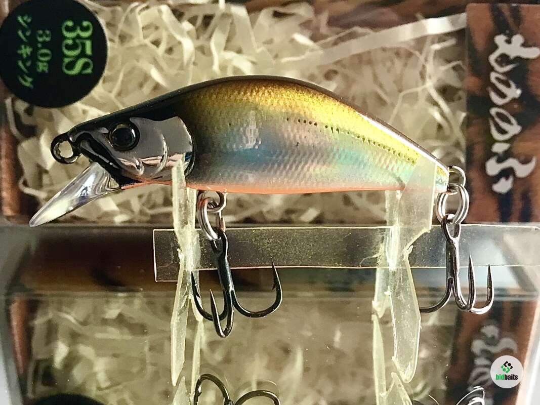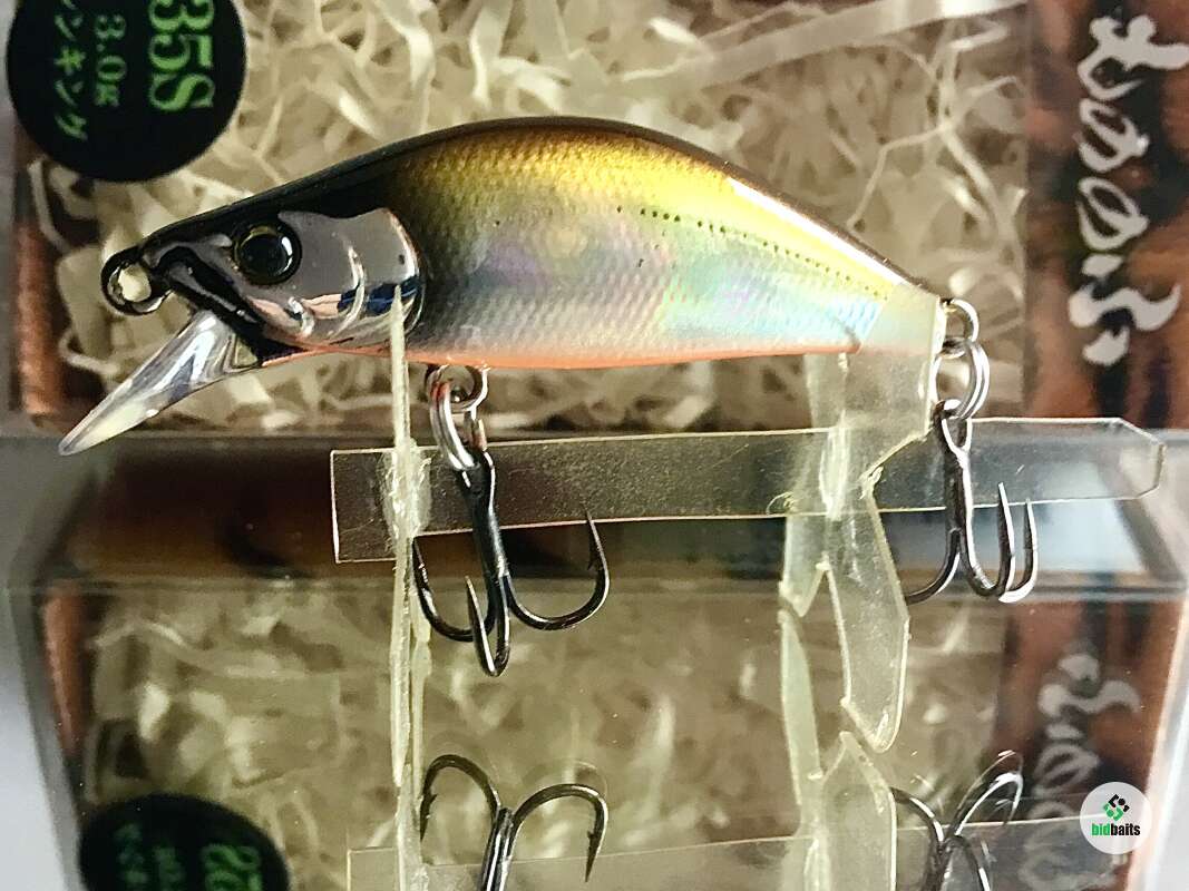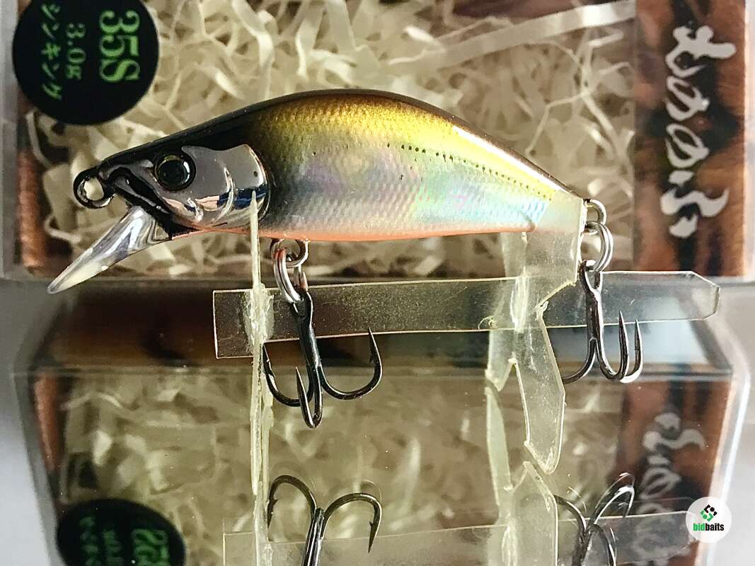MONONOFU 35S - одна из самых компактных моделей от компании BASSDAY, рассчитанный на ловлю ручьевой и речной форели, в условиях средней полосы хорошо показал себя при ловле белого хищника: голавля, язя, жереха .MONONOFU 35S , предназначенный в первую очередь для ловли в верховьях и на мелководьях, не теряется и на основном течении средних рек с большими глубинами, привлекая активными колебаниями и более крупные особи. Фиксированная отгрузка в нижней части тела обеспечивает отличный полёт и точность заброса, даже когда приходится выполнять его из неудобного положения. Сопротивление сильному течению добавляет игре частотности и бликов от наклонов тела вправо-влево. В более спокойном водяном потоке приманка движется более вальяжно, демонстрируя выраженный роллинг. При рывках может менять горизонт проводки на более высокий, после чего, на паузе, «сыпется» вниз, продолжая дрожать.