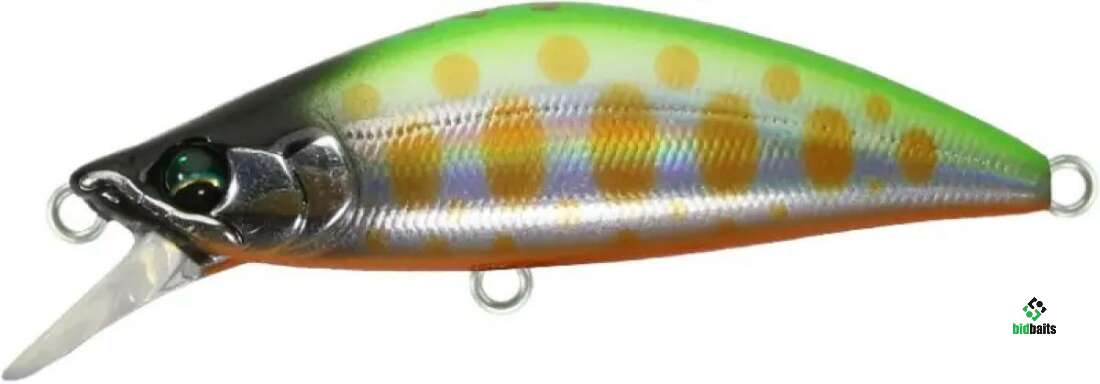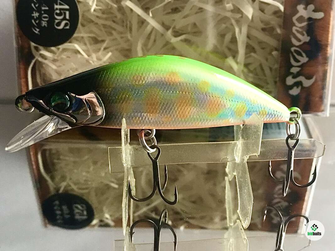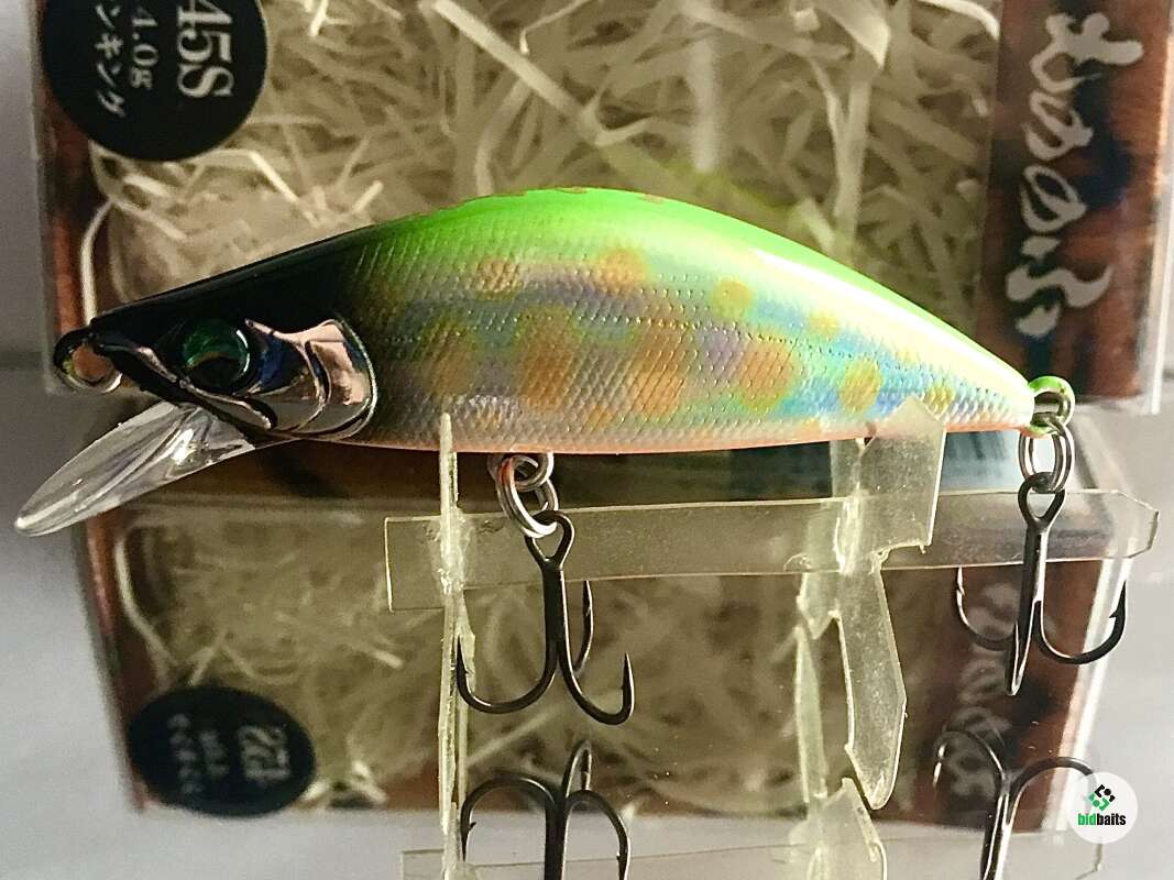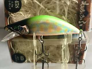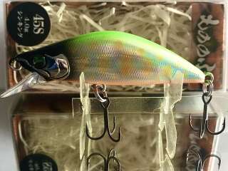 MONONOFU 45S - одна из самых компактных моделей от компании BASSDAY, рассчитанный на ловлю ручьевой и речной форели, в условиях средней полосы хорошо показал себя при ловле белого хищника: голавля, язя, жереха .MONONOFU 45S , предназначенный в первую очередь для ловли в верховьях и на мелководьях, не теряется и на основном течении средних рек с большими глубинами, привлекая активными колебаниями и более крупные особи. Фиксированная отгрузка в нижней части тела обеспечивает отличный полёт и точность заброса, даже когда приходится выполнять его из неудобного положения. Сопротивление сильному течению добавляет игре частотности и бликов от наклонов тела вправо-влево. В более спокойном водяном потоке приманка движется более вальяжно, демонстрируя выраженный роллинг. При рывках может менять горизонт проводки на более высокий, после чего, на паузе, «сыпется» вниз, продолжая дрожать.